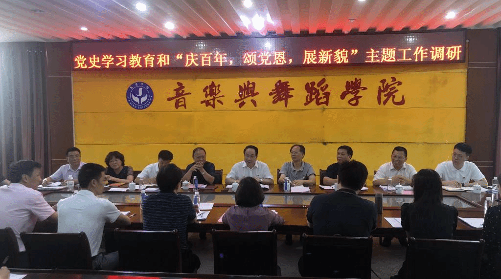 5月27日下午,学校党委副书记罗任权带领组织部、宣传部、党史学习教育领导小组办公室以及指导组、宣传组、督导组负责人,到化学与环境学院、教育科学学院、音乐与舞蹈学院开展党史学习教育、“庆百年,颂党恩,展新貌”主题系列活动、基层党建、师德师风建设等方面工作调研并召开座谈会。相关学院负责人、师生代表近50人参加了会议。