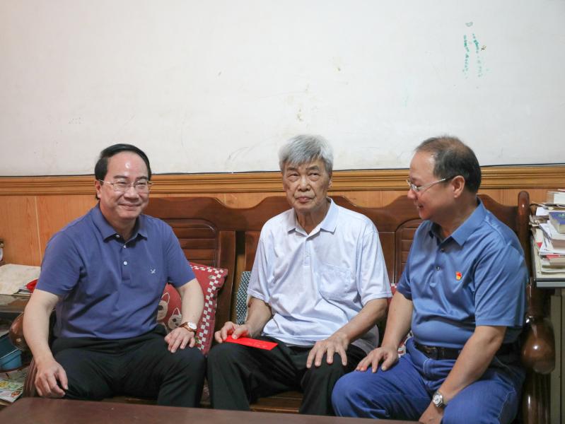 在庆祝中国共产党成立102周年之际,6月29日上午,党委书记吴琦、党委副书记罗任权代表学校领导班子分别带领慰问工作组看望慰问老党员,为党龄超过50年老党员颁发“光荣在党50年”纪念章,向他们致以节日的问候和祝福,为他们送去党组织的关怀和温暖,并向他们致以崇高敬意。