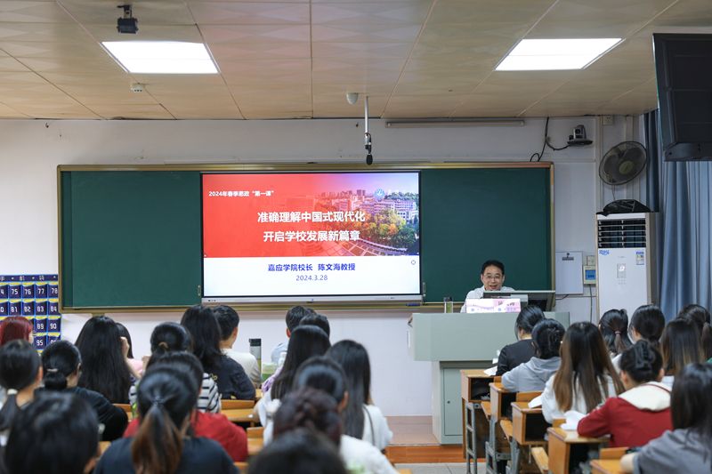 3月28日下午,校长陈文海以《准确理解中国式现代化, 开启学校发展新篇章》为题,在锡昌科技楼503室为经济管理学院2022级财务管理专业学生讲授“思政第一课”,教育广大学生牢记嘱托、砥砺奋进。