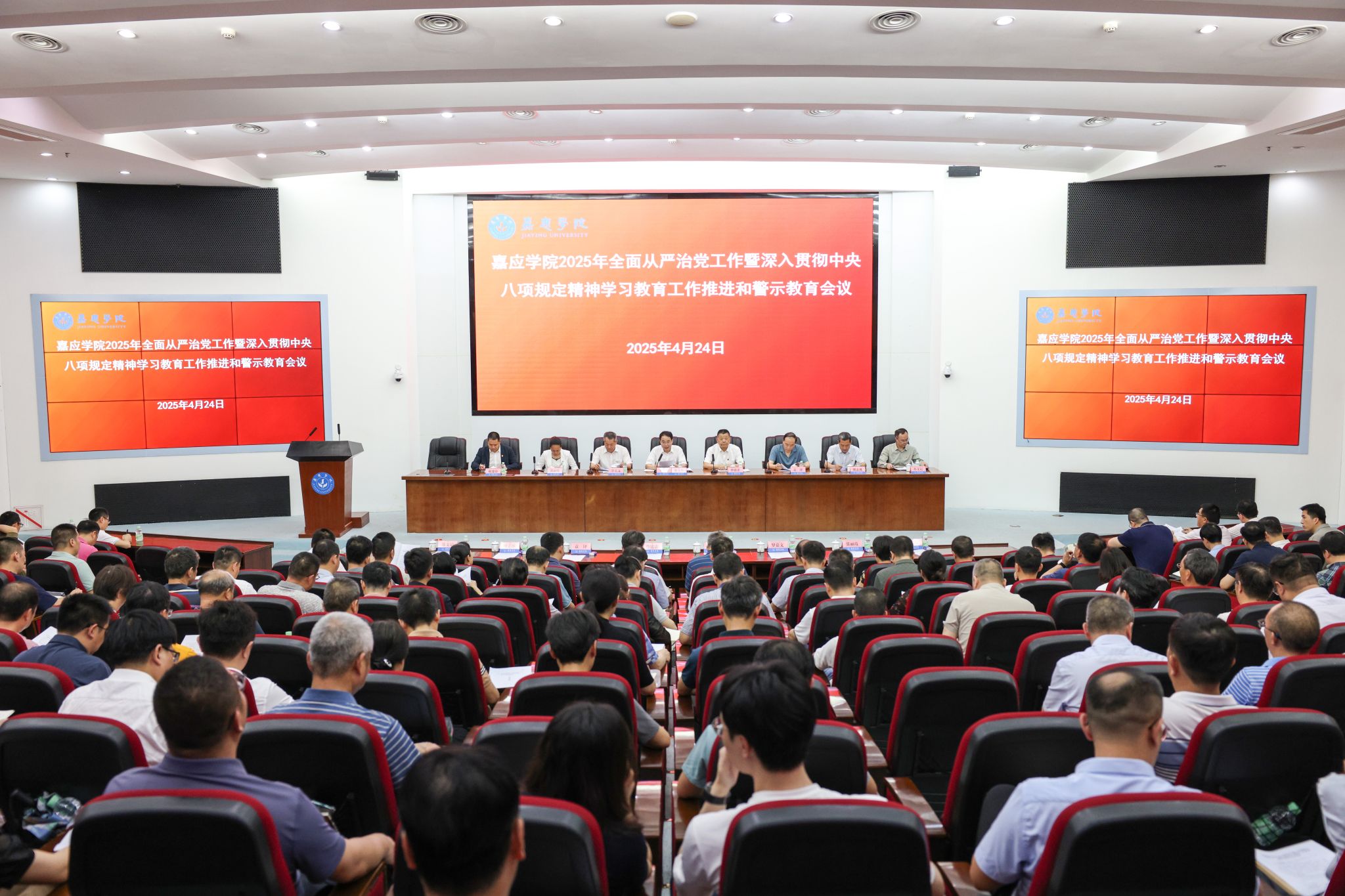 4月24日,学校在国际会议中心召开了2025年全面从严治党工作暨深入贯彻中央八项规定精神学习教育工作推进和警示教育会,学习贯彻习近平总书记在二十届中央纪委四次全会上的重要讲话和全会精神、全国全省教育系统全面从严治党工作会议精神,总结2024年全面从严治党工作,部署2025年重点任务,扎实推进深入贯彻中央八项规定精神学习教育走深走实。学校党委书记陈文海主持会议并作讲话,校长曹建忠,副校长罗嘉文、袁 铎、张丽霞、廖志成、陈建存,纪委书记苏文记,以及党委委员、纪委委员、全体中层干部、各二级党组织纪检委员和相关部门科级以上干部等共200多人参加了会议。