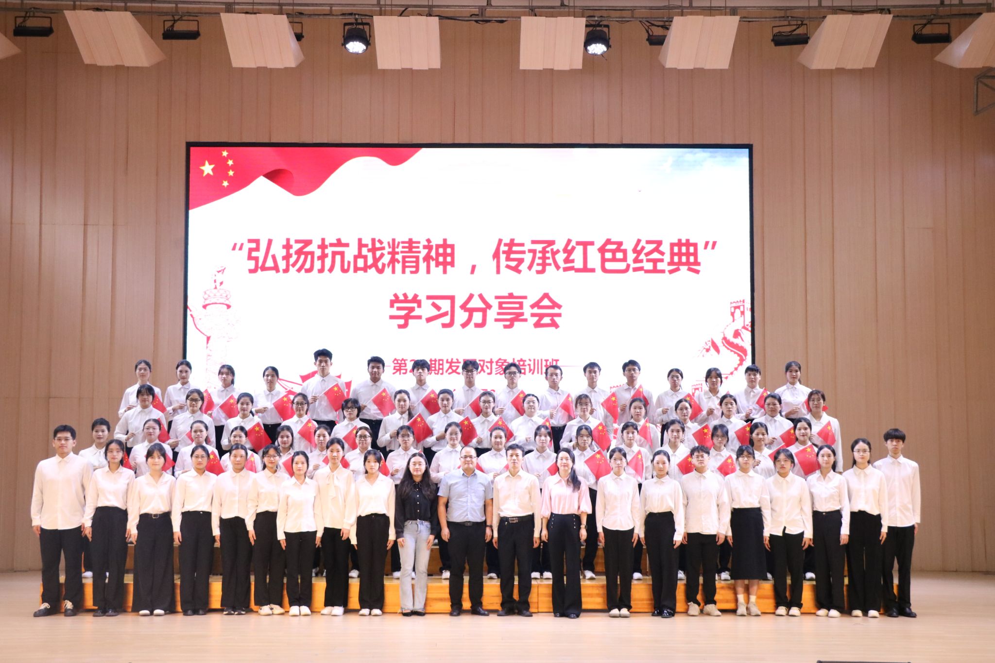为传承和弘扬伟大抗战精神,10月29日下午,我校在活活艺术教育中心音乐厅举办“弘扬抗战精神,传承红色经典”学习分享会活动。学校党委组织部、马克思主义学院、音乐与舞蹈学院相关老师和第23期发展对象培训班全体学员300多人参加了活动。